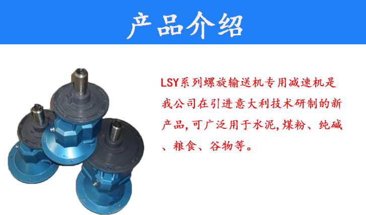 LSY系列螺旋輸送機(jī)專用減速機(jī)是我公司在引進(jìn)意大利技術(shù)研制的新產(chǎn)品,可廣泛用于水泥,煤粉、純堿、糧食、谷物等。
