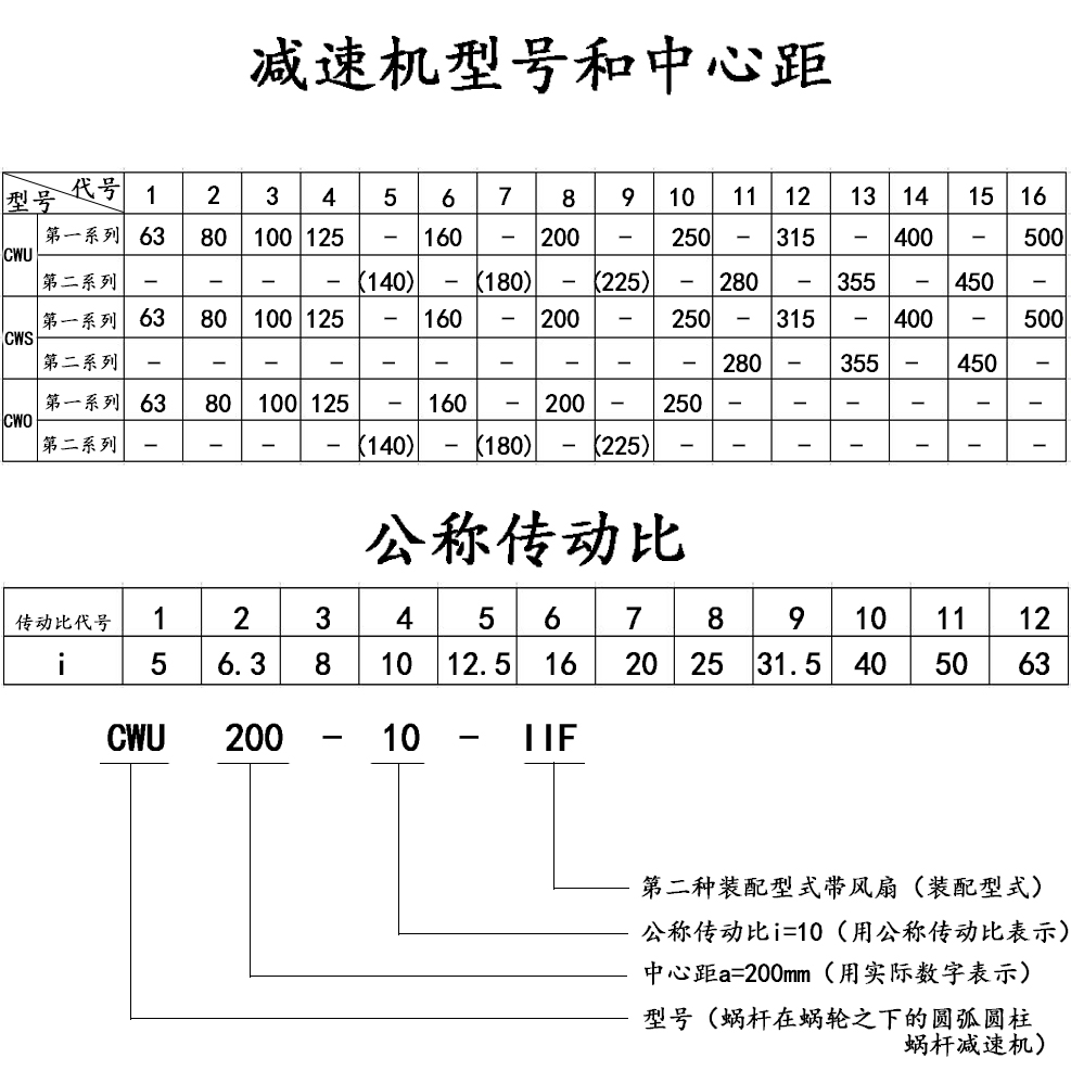 二、型號、中心距、傳動比、標記示例