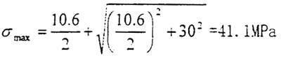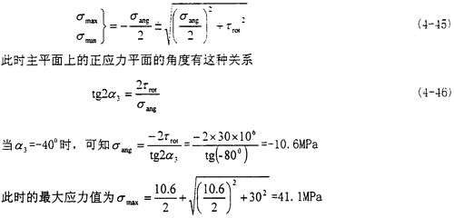 此時主平面上的正應力平面的角度有這種關系:tg2α4=-∞,所以有α4=-45°或-135°,此時的最大應力值為σmax=30MPa
