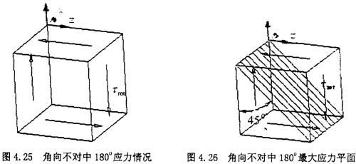 此時的受力圖中可以看出,附加的拉應力已經減小為零,實際上單元體受力其實屬于純剪切狀態,