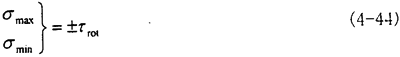 此時的應力情況屬于三向應力狀態,所以其分析過程和徑向不對中90°以及270°以情況相似,只是這里還有了附加的軸向拉應力和附加的角向應力,將各個應力值σxx=σax+σang,σyy=0,σzz=0,τxy=τrot,τyz=0,τzx=τrad分別代入式(4-29)(4-30)(4-31)中,可以得到
