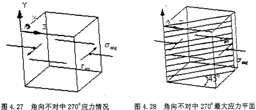 (3)角向不對中270°位置:當圓環上的單元體旋轉到最下方時,也就是270°位置時,單元體的應力如下圖所示