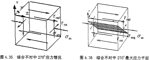 此時的應力情況屬于三向應力狀態,所以其分析過程和徑向不對中90°以及270°情況相似,只是這里還有了附加的軸向拉應力和附加的角向應力,將各個應力值