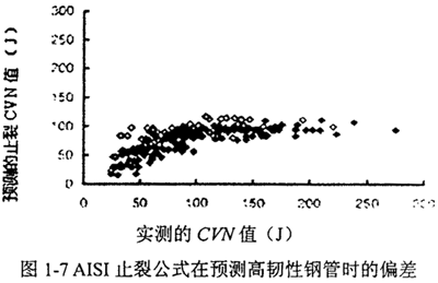 隨著管線輸送技術的發展,高壓力,高韌性鋼管逐漸投入使用。對于高韌性材料和具有上臺能(Rising-shelf)的材料,在引用的圖1-7中,基于標準夏比沖擊韌性的公式在實驗驗證過程中可靠性不理想。B.N.Leis對此提出了修正算法,但仍未很好地解決這個問題,并且失去了原有的物理意義。