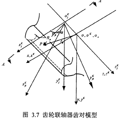 如圖3.7所示,O-XYZ;是固定坐標系,O是內外齒輪對中時內外齒輪中心Z是齒傳輸線聯軸器的軸向,OK-XKYKZK:分別代表固定在內外齒輪上的坐標,OK是內外齒輪中心(k=N,w)表示內處齒輪),