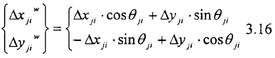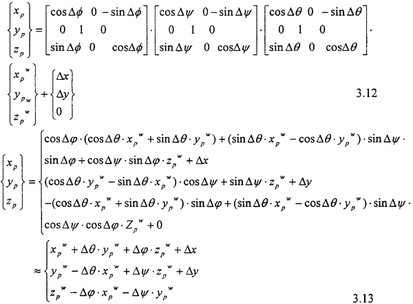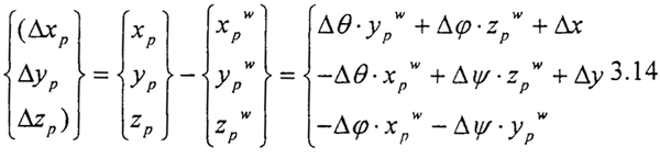 ,Δψ,Δθ為微小位移,則外齒輪任意一點PW(XPW,YPW,ZPW)在外齒輪相對內齒輪發生位移后,在靜止坐標系內的坐標為:PW(XP,YP,ZP)其值由式3.12~3.13定。