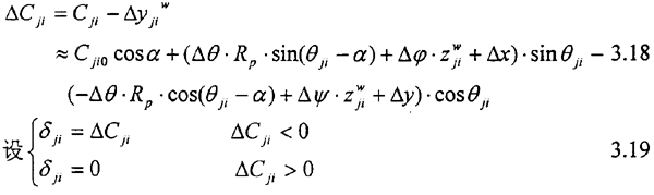上式ΔCji--<0說明內外齒發生相對位移后,齒面相對間隙為負,即內外對應齒對在j微元第i齒對處相互接觸,δji可近似的看作內外齒在j微元第i齒對處的相對變形。ΔCji-->0說明內睜生相對位稱后,齒面相對間隙為正,內外對應齒對在j,I處存在間隙,則可以認為內外齒在ji處的相對變形δji=0。