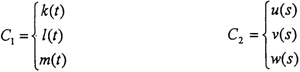 假設M點是兩軸的嚙合點(運動曲線C1和C2的交點,也就是傳力點)假設初始條件為:當時間t=0時,