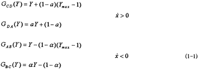 式中A1=A-β,為了全面包含雙線性遲滯系統,進一步修改為: