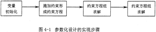 在變量幾何法中,約束轉化為一系列以特征點為變量的非線形方程組,對于給定的約束,通過數值法求解非線形方程組確定出幾何細節。