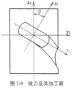 與軋輥的求解相似,對于回轉型刀具,也可以先求出兩共軛曲面的接觸線,然后使接觸線按照兩曲面特定的運動關系運動,就得到要加工的曲面。刀具加工的曲面可以是回轉面,也可以是螺旋面。銑刀及其加工面如圖3-9所示。