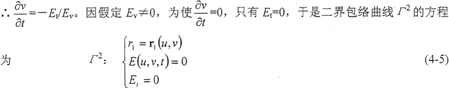兩偏導數不能同時為零。因為如果同時為零,說明包絡條件中沒有變數u、v,這時t只能等于常數,代入第一式,只能得到曲面族中的某一曲面,而不存在包絡線。