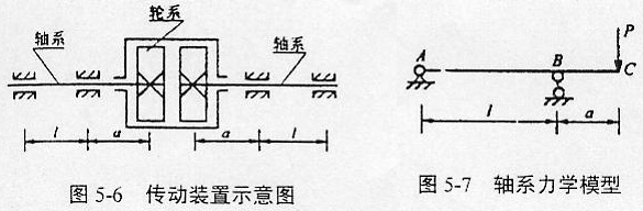 共軛鼓形齒聯軸器傳動裝置示意圖如圖5-6所示,其相應的軸系力學模型如圖5-7所示,模型中自由端載荷P=G/2,G為聯軸器的重量。