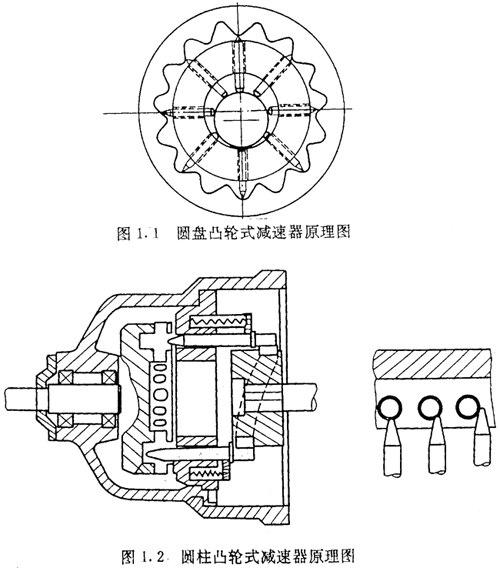 圖1.1為圓盤凸輪式,采用滾柱徑向滑槽式結構,其目的是為了得到大的減速比及大的傳遞扭矩。顯然這種結構由于滾柱系尖頂易磨損,降低了其承載能力。