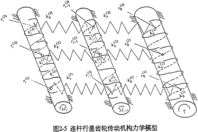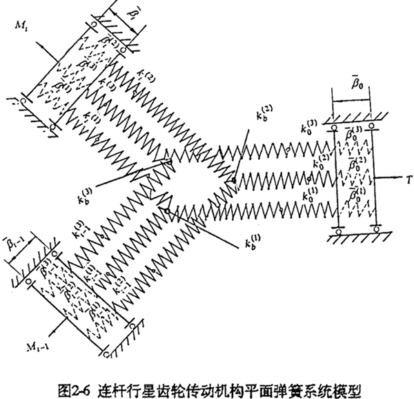 國科2-3所示為一多相并列連桿行星齒輪過約束機構。為了得到與靜不定次數(shù)相對應的S個補充方程,必考慮各構件間、各相機構間、以及多齒承載的位移協(xié)調(diào)要求,這是分析具有多余聯(lián)系體系受力的一般方法。為此,可先將機構轉化為受力、變形等效的結構(幾何不變體系),然后用結構力學的方法分析系統(tǒng)、構件位移協(xié)調(diào)的條件。