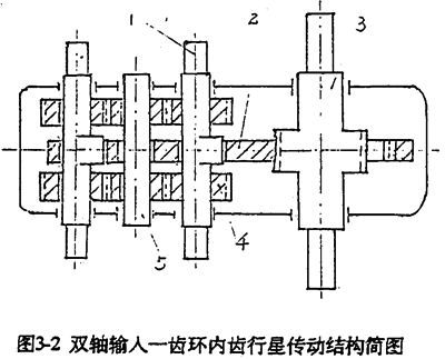 一齒環內齒行星傳動按機構克服“死點”的方法,有雙軸式雙軸輸入、雙軸式單軸輸入、以入多軸式等結構形式。