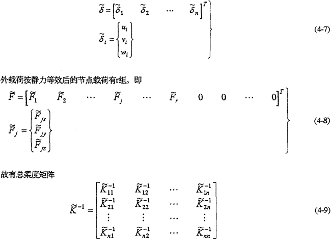 式(4-19)就是用有限元法通過(guò)加單位載荷求得的彈性體柔度矩陣