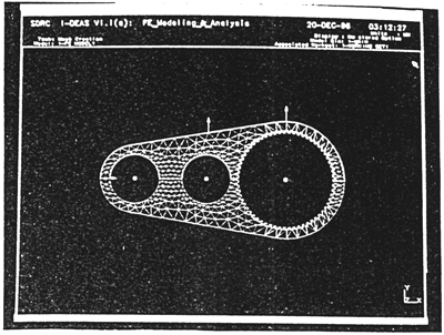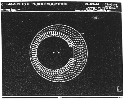從上節(jié)介紹知,彈性體的柔度系數(shù)矩陣可以通過(guò)有限元法,加單位載荷來(lái)計(jì)算確定。因此,偏心套及內(nèi)齒行星傳動(dòng)齒板的柔度計(jì)算,實(shí)際上是對(duì)其進(jìn)行有限元建模分析。下面以SHQ40型三環(huán)傳動(dòng)為例,在SUN工作站上使用I-DEAS軟件中的有限元模塊計(jì)算偏心套及齒板的柔度系數(shù)。