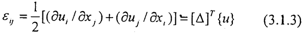 代入式(3.1.3)由此推出應(yīng)變與節(jié)點(diǎn)位移關(guān)系: