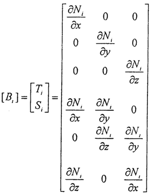 [B]為應(yīng)變矩陣,其中第i個(gè)子矩陣為