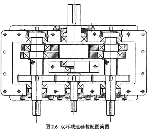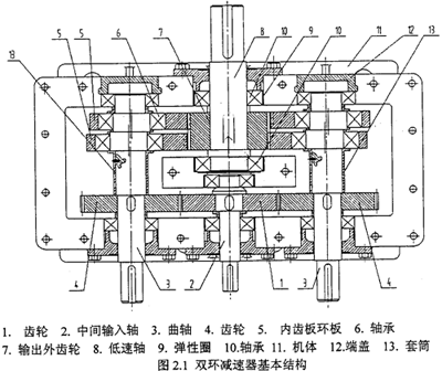 根據以上分析,本文設計了如圖2.1 所示的新型雙環減速器結構,并申請獲得了國家實用新型專利(專利號:ZL 01 2 06843.8),其特點如下: