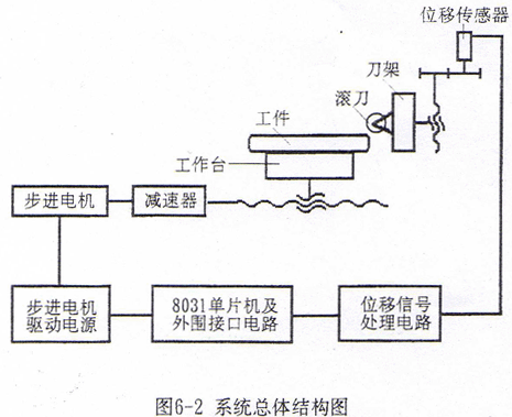 普通滾齒機(jī)的工作臺(tái)是用絲桿螺母及其手動(dòng)機(jī)構(gòu)來(lái)實(shí)現(xiàn)徑向進(jìn)刀的,可以在其上加設(shè)驅(qū)動(dòng)裝置,實(shí)現(xiàn)刀架沿工件徑向的相對(duì)運(yùn)動(dòng)要求。刀架的上下移動(dòng)也可以用伺服機(jī)構(gòu)驅(qū)動(dòng),實(shí)現(xiàn)刀架和工作臺(tái)兩軸驅(qū)動(dòng)的數(shù)字控制。但是刀架有較大的自重,其驅(qū)動(dòng)還要克服刀具切削力,因而需要較大的驅(qū)動(dòng)力;另外,普通滾齒機(jī)的結(jié)構(gòu)決定了刀架驅(qū)動(dòng)數(shù)控伺服機(jī)構(gòu)及減速機(jī)裝置沒(méi)有足夠的安裝空間,這將使機(jī)床的改造變得較為復(fù)雜。機(jī)床本身的刀架進(jìn)給運(yùn)動(dòng)鏈設(shè)計(jì)完美,可以方便、平穩(wěn)地實(shí)現(xiàn)進(jìn)給運(yùn)動(dòng)。因此本設(shè)計(jì)采用工作臺(tái)徑向進(jìn)給數(shù)控驅(qū)動(dòng)、位移傳感器檢測(cè)刀架位移的準(zhǔn)二軸數(shù)控方案。