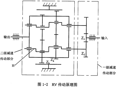 在K-H-V型行星齒輪傳動基礎上,發展起來的RV傳動和雙曲柄式少齒差行星傳動機構在工程上得到了較好地應用。圖1-2所示為RV傳動原理圖。