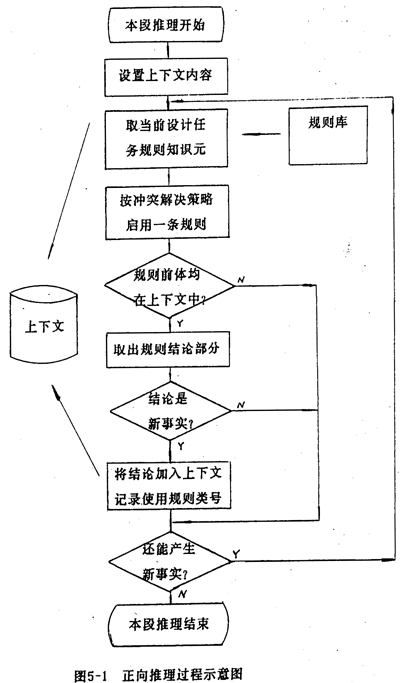 正向推理系統中,用戶先輸入與當前問題有關的信息,構成當前數據庫(上下文)。正向推理的示意圖如圖5-l。