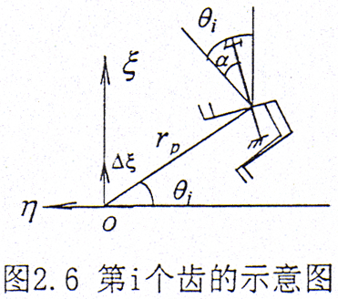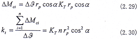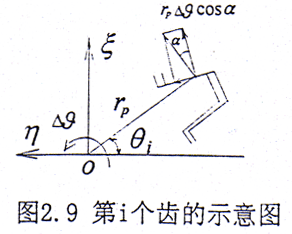 設繞z方向給一小扭轉角△θ,如圖2.9所示,則在第i對齒對上產生的扭矩為△Mci,設rp為節圓半徑。則有