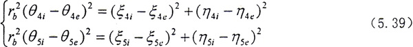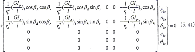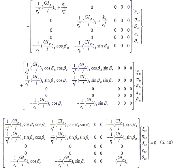 在式(5.27)和式(5.28)中,由于包含了θj+1(即為圖5.5中的θ5i)。而θ5i又必須要滿足以上的約束關(guān)系,所以可以想象在考慮了二個(gè)半聯(lián)軸器后,耦合關(guān)系更為復(fù)雜。但處理的方法是類(lèi)同的,具體過(guò)程在此不再重復(fù)了。整個(gè)系統(tǒng)有8個(gè)結(jié)點(diǎn),共48個(gè)自由度。下面僅列出結(jié)點(diǎn)4處的運(yùn)動(dòng)微分方程。