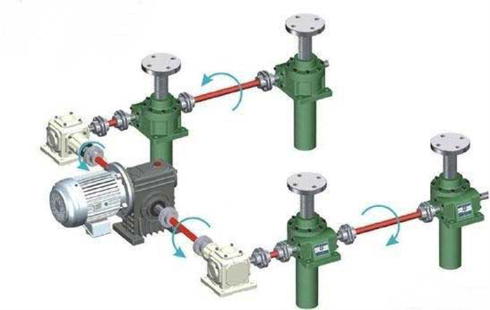 四臺聯動升降平臺,由四臺升降機,兩臺轉向箱,若干連桿,連軸器,一臺WP雙出軸減速機,一臺電機組合而成.屬于常用的H型...