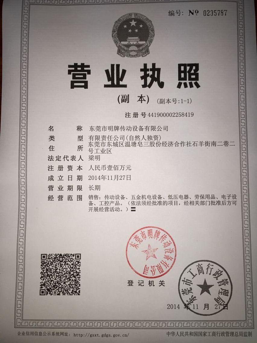 東莞市明牌傳動設備有限公司坐落于世界制造業名城東莞市。辦公面積1000多平方米,是廣東地區最具專業性的傳動設備公司之一,本公司是一家集研發,設計,制造和經營于一體的現代化機械傳動企業。主要產品有:高效節能鋁合金電機、