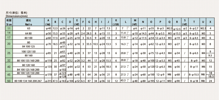 HC-XBS系列諧波減速機(三個組件)。 優點: 1、結構簡單,采用一個柔輪、一個鋼輪和一個波發生器 。 不利于用在傳送比小于50的場合。 應用范圍: 除了和HC-XB1相同的應用外,主要應用要求安裝空間小的場合,如機械手、攝像云臺、實驗設備等。 |