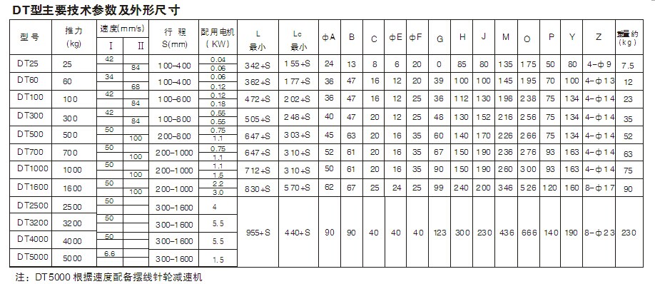 DT電動推桿選型 |
