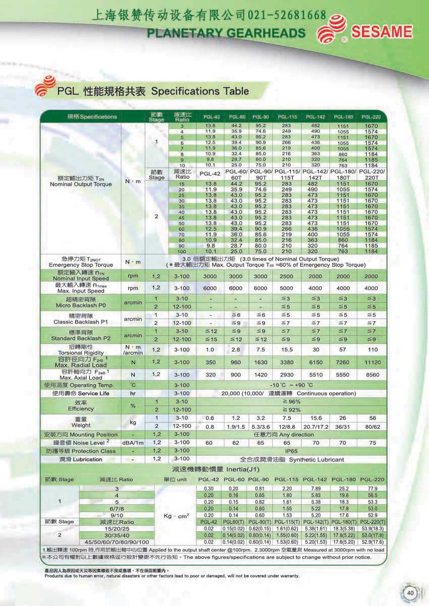 世協行星減速機具有高精度、高壽長、低噪音、外觀美、小體積、安裝便利、精確定位等特點,能配合各種品牌的伺服、步進、直流馬達等傳動系統,如:三菱、西門子、松下、臺達、安川、三洋、富士、施耐德等…可降低轉速,提高輸出扭矩和降低負載慣量,將動力完整地傳輸至應用端。適用于工具機械、包裝機械、產業機器人、半導體設備、航太工業、醫療設備,食品機械及檢驗測試儀器等等各種精密自動化機器設備中。 世協也是臺灣最早研發量產精密行星減速機的廠家。早在2003年,世協就已經開發出PGX型行星減速機并量產。經過近十年的不斷改良和創新,如今世協已經擁有PH\PG\PE三個大類的十四的種類的行星減速機,能滿足各行業絕大部分的需求。尤其在機器人行業,精密切割行業,數控機床行業更是占絕對優勢。