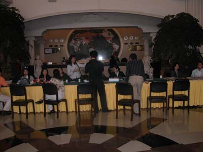 | 中國通用機械工業協會第五屆會員代表大會即將在云南開幕.會議地址在美麗的昆明云安會都舉行,目前會議報到工作正在進行. 昆明云安會都坐落于昆明風光秀麗的風景名勝區---西山"睡美人"腳下,碧波蕩漾的滇池湖畔.云安會都庭院寬敞,綠樹成蔭,鮮花四季,古榕蒼翠,小橋流水,魚躍荷池,鳥鳴翠柳.中國通用機械工業協會第五屆會員代表大會報道接待工作就在這人與自然和諧相生的景象中積極的展開.